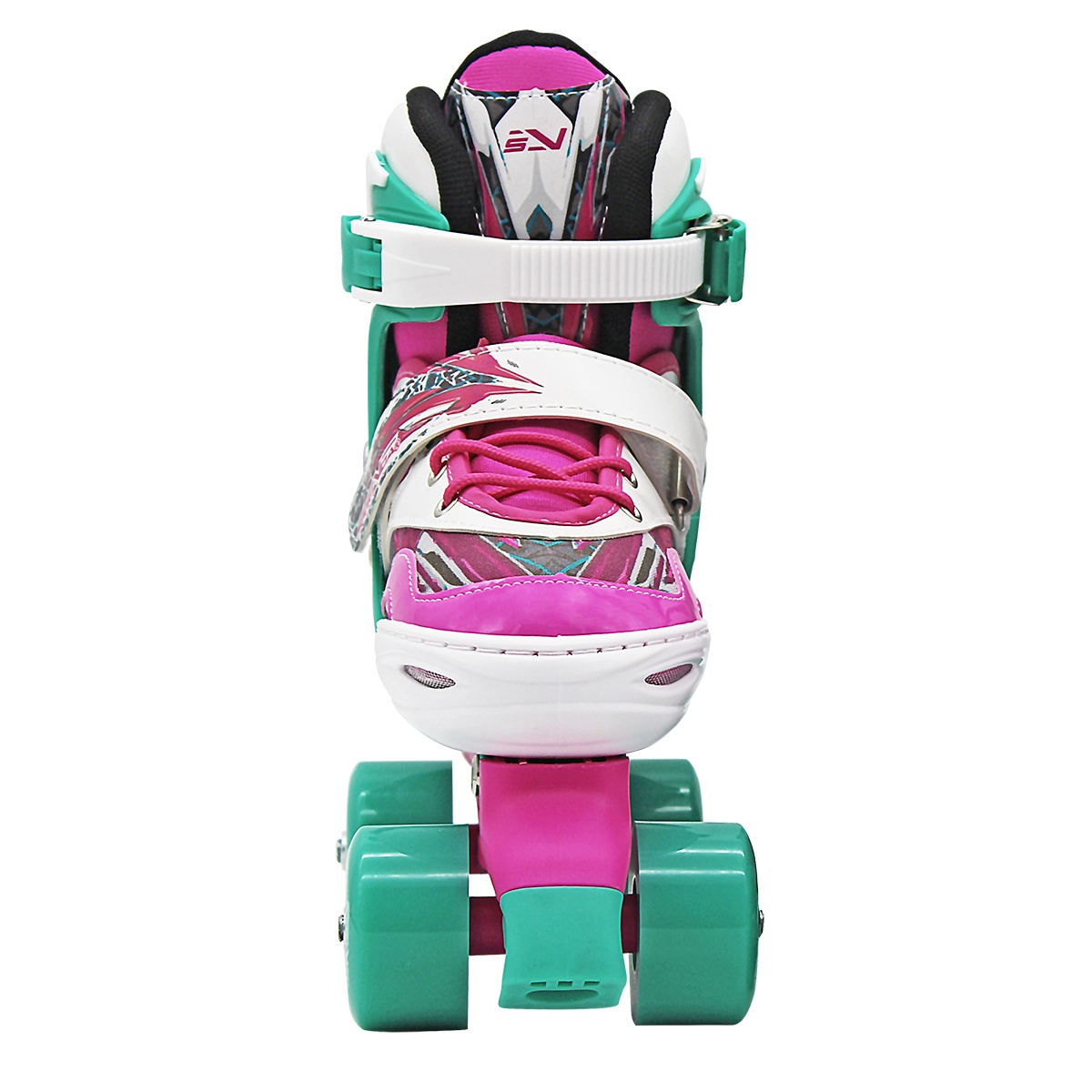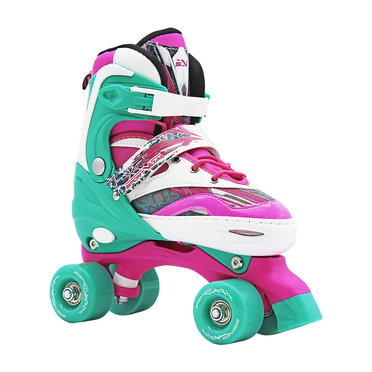 Trekové kolečkové brusle dvojřadé Sportvida nastavitelná velikost ( 31-34 ) růžovo-bílo-tyrkysové